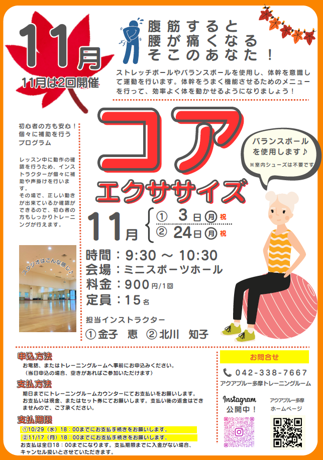 当館4階ミニスポーツホールにて、「コアエクササイズ」を開催いたします。