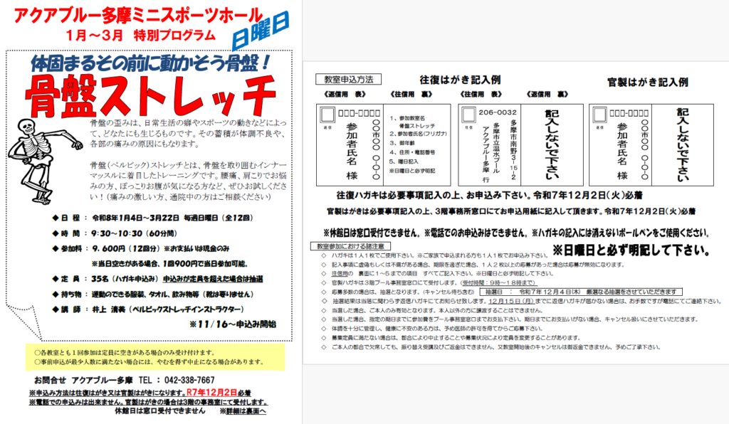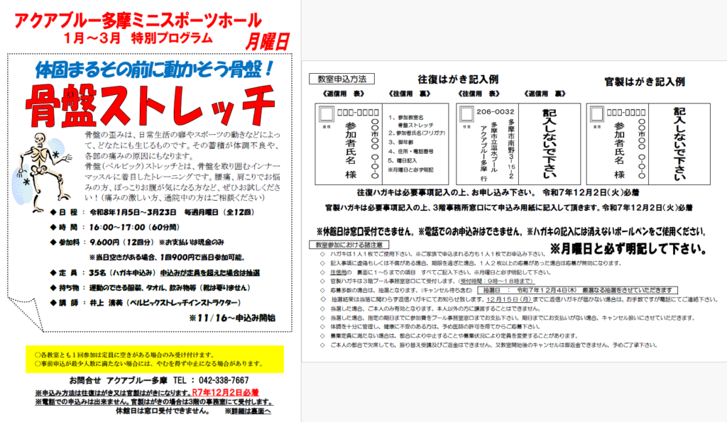 「骨盤ストレッチ」令和8年1月開始分の申込みが令和7年11月16日(日)より受付を開始いたします。