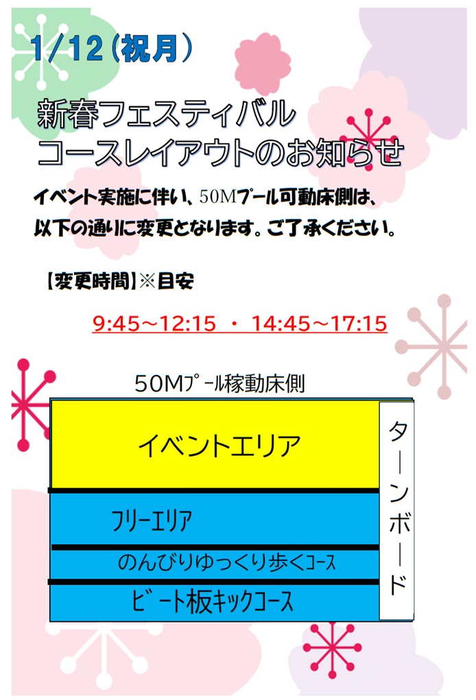 令和8年1月12日(成人の日)イベント開催に伴う、50Mプール一部利用制限のお知らせ