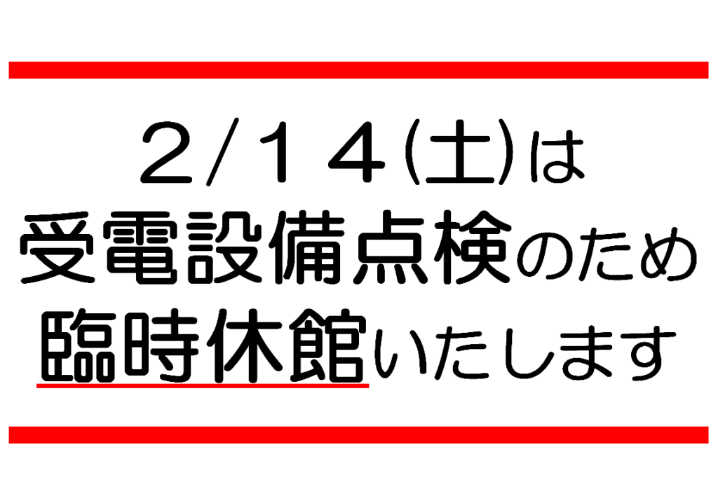トレーニング2026年1月23日 令和8年2月14日(土)臨時休館のお知らせ 日頃からアクアブルー多摩をご利用いただきありがとうございます。 令和8年2月14日(土)は施設受電設備点検のため、臨時休館となります。 ご利用のお客様にはご迷惑をお掛け致しますが、ご理解ご協力をお願いいたします。 お問合せ:アクアブルー多摩 042(338)7667