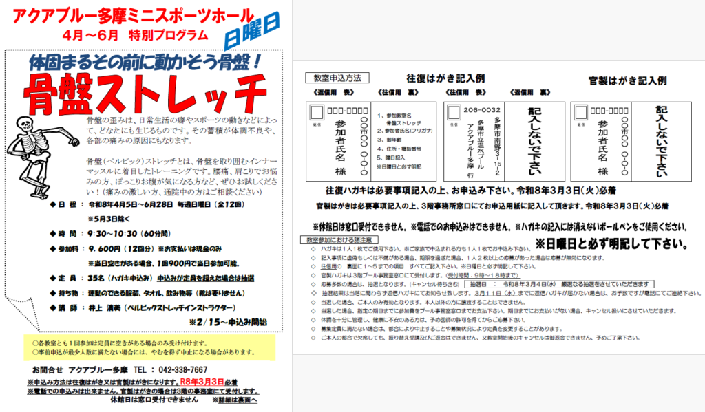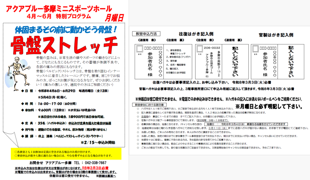 骨盤ストレッチ 令和8年4月開始教室のお知らせ(2/15~申込開始)